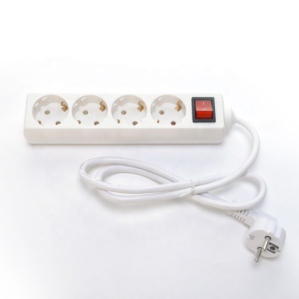Eu Power Strip with 4 Outlet Power Strips Rated Current 10/16A White Surge Protector Cable H05VV-F 3x1.5mm2 Images |